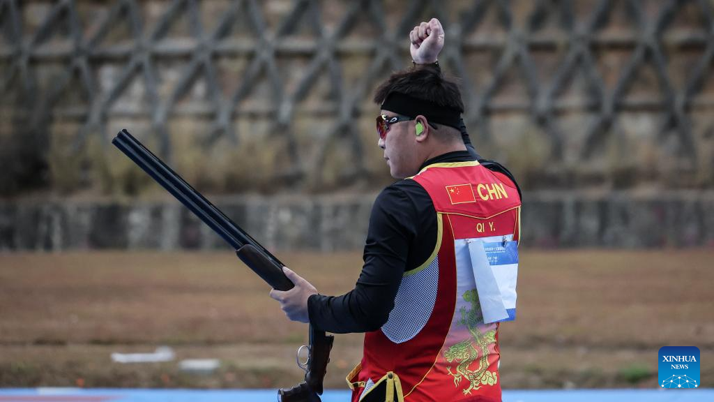 Qi Ying of Shandong competes during the trap men's final of shooting at China's 15th National Games in Guangzhou, south China's Guangdong Province, Nov. 19, 2025. (Xinhua/Pan Yulong)