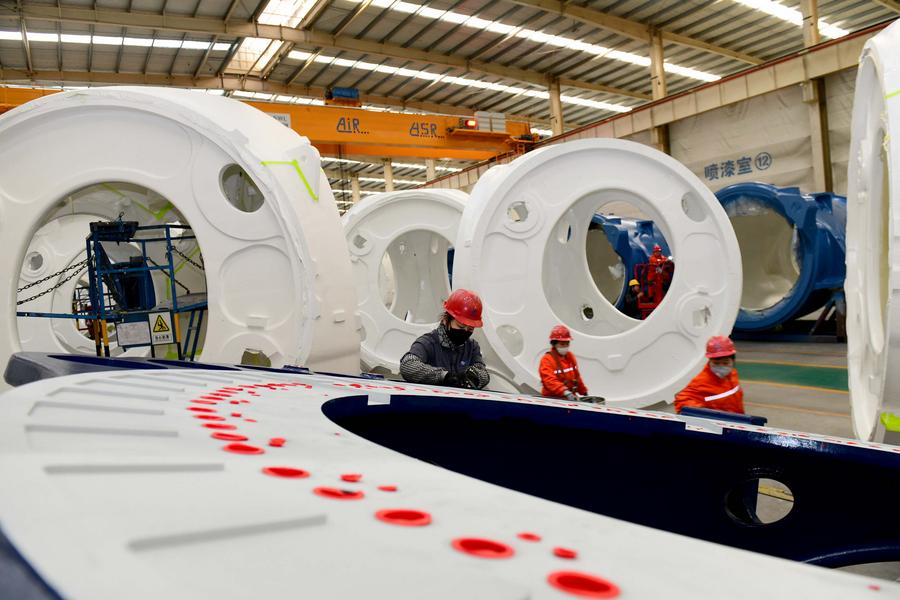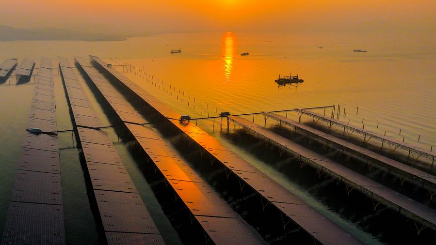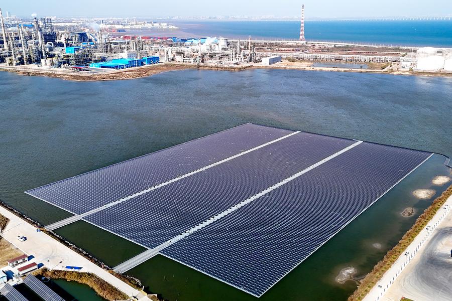 An aerial drone photo taken on Nov. 18, 2025 shows a floating photovoltaic project of Sinopec Qingdao Refining and Chemical Co., Ltd. in Qingdao, east China's Shandong Province. (Photo by Zhang Jingang/Xinhua)An aerial drone photo taken on Nov. 16, 2025 shows an offshore photovoltaic power generation project in the waters of Aoshanwan in Jimo District, Qingdao City, east China's Shandong Province. (Photo by Liang Xiaopeng/Xinhua)Workers paint hubs of wind power generators at a painting workshop of the wind power equipment manufacturing industrial park in Huimin County, east China's Shandong Province, Nov. 19, 2025. (Xinhua/Guo Xulei)An aerial drone photo taken on Nov. 17, 2025 shows a photovoltaic power generation project at Andi Township of Yinan County in Linyi City, east China's Shandong Province. (Photo by Wang Yanbing/Xinhua)An aerial drone photo taken on Nov. 18, 2025 shows the rooftop zero-carbon photovoltaic installation of the People's Hospital of the Marine Ecological Civilization Comprehensive Experimental Area of Changdao in Yantai City, east China's Shandong Province. (Photo by Zhang Weikang/Xinhua)An aerial drone photo taken on Nov. 19, 2025 shows a floating photovoltaic platform and an offshore photovoltaic demonstration base in the waters of Yantai Hi-tech Industrial Development Zone in Yantai City, east China's Shandong Province. (Photo by Tang Ke/Xinhua)An aerial drone photo taken on Nov. 13, 2025 shows an offshore photovoltaic project in Dongying City, east China's Shandong Province. (Photo by Zhou Guangxue/Xinhua)Workers paint a hub of wind power generator at a painting workshop of the wind power equipment manufacturing industrial park in Huimin County, east China's Shandong Province, Nov. 19, 2025. (Xinhua/Guo Xulei)An aerial drone photo taken on Nov. 19, 2025 shows a blade storage yard of the wind power equipment manufacturing industrial park in Huimin County, east China's Shandong Province.(Xinhua/Guo Xulei)■