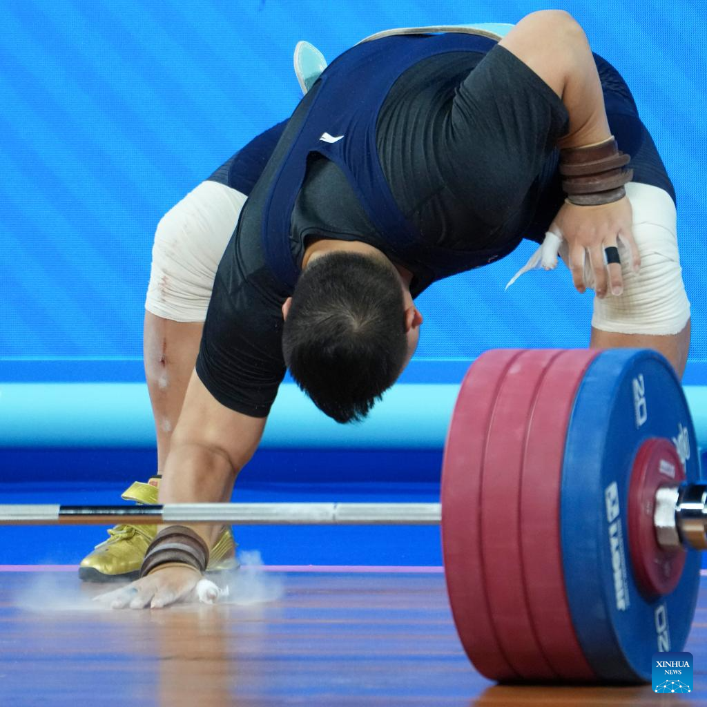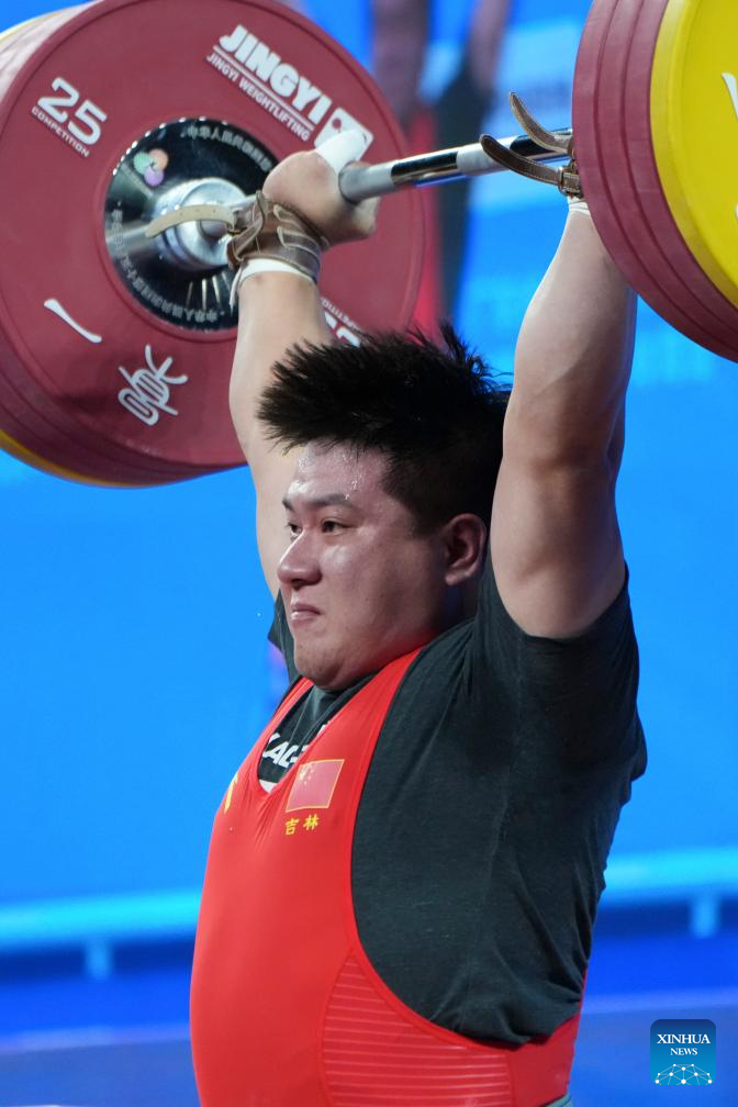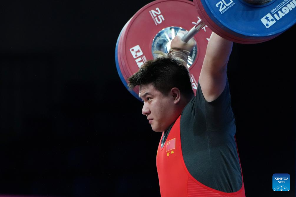Ren Xianglin of Jilin competes in snatch during the weightlifting men's 109kg final at China's 15th National Games in Dongguan, south China's Guangdong Province, Nov. 20, 2025. (Xinhua/Yang Chenguang)
