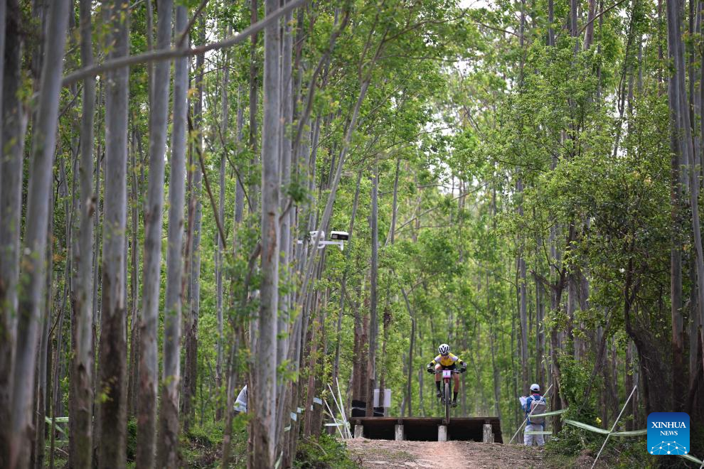 Liang Zhenglan of Yunnan competes during the women's cross-country final of cycling mountain bike at China's 15th National Games in Jiangmen, south China's Guangdong Province, Nov. 20, 2025. (Xinhua/Chen Zhonghao)
