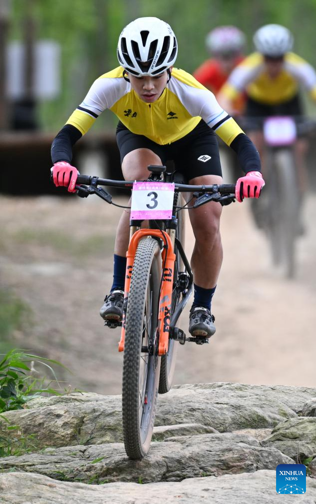 Wei Qianqian of Jiangsu competes during the women's cross-country final of cycling mountain bike at China's 15th National Games in Jiangmen, south China's Guangdong Province, Nov. 20, 2025. (Xinhua/Chen Zhonghao)