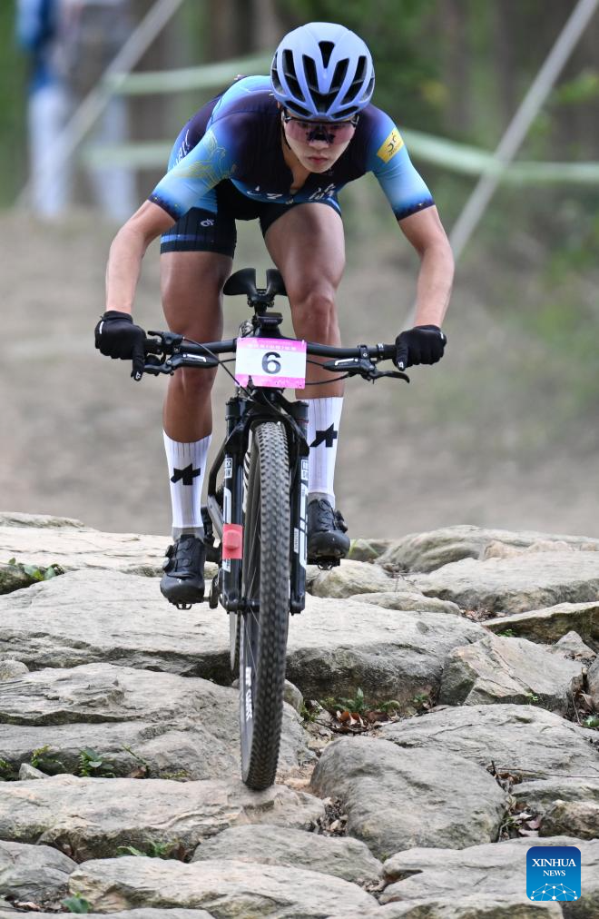 Wu Zhifan of Yunnan competes during the women's cross-country final of cycling mountain bike at China's 15th National Games in Jiangmen, south China's Guangdong Province, Nov. 20, 2025. (Xinhua/Chen Zhonghao)
