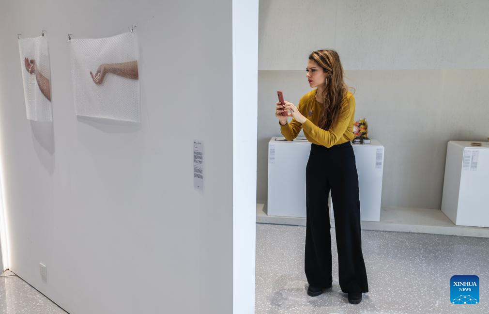 A woman visits the Britain pavilion of Puyuan International Contemporary Jewellery Art and Design Biennale in Tongxiang City, east China's Zhejiang Province, Nov. 21, 2025. The first edition of Puyuan International Contemporary Jewellery Art and Design Biennale will kick off here on Nov. 22. (Xinhua/Xu Yu)