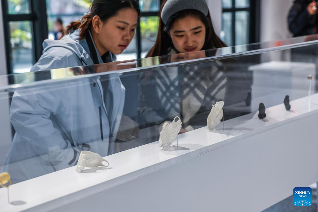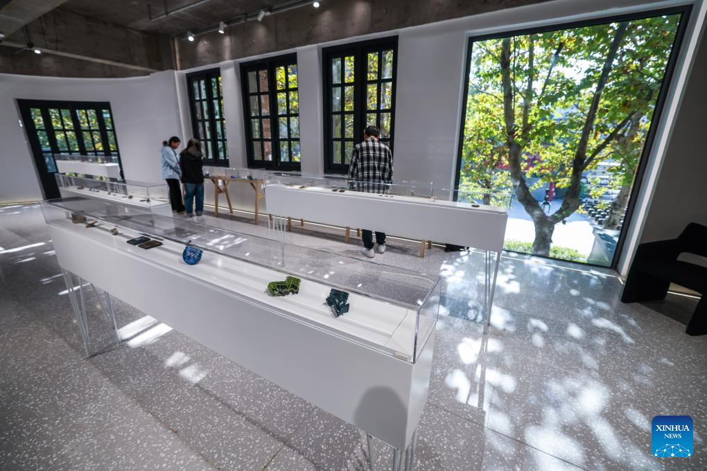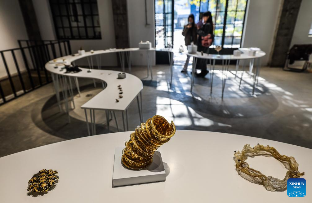 People visit the China pavilion of Puyuan International Contemporary Jewellery Art and Design Biennale in Tongxiang City, east China's Zhejiang Province, Nov. 21, 2025. The first edition of Puyuan International Contemporary Jewellery Art and Design Biennale will kick off here on Nov. 22. (Xinhua/Xu Yu)
