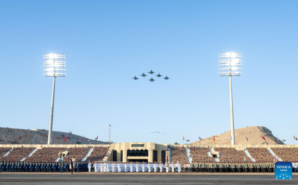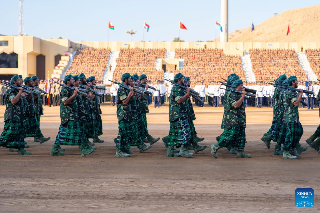 This photo taken on Nov. 20, 2025 shows a scene of a military parade marking Oman's National Day in Muscat, Oman. (Ministry of Information in Oman/Handout via Xinhua)