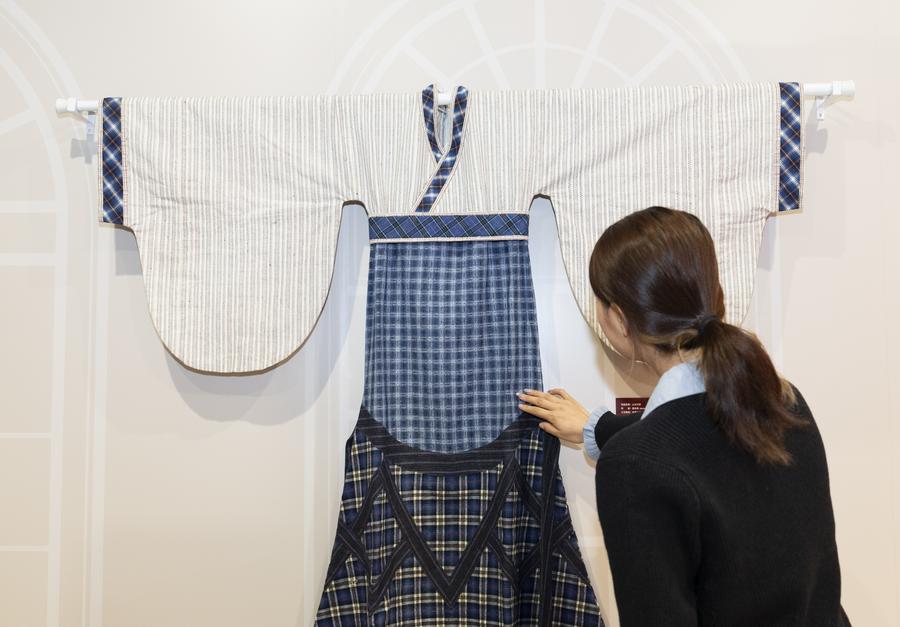This photo taken on Nov. 21, 2025 shows a homespun Hanfu at an exhibition held at the Sensory Experience Gallery of the Palace Museum in Beijing, capital of China. (Xinhua/Cai Yang)