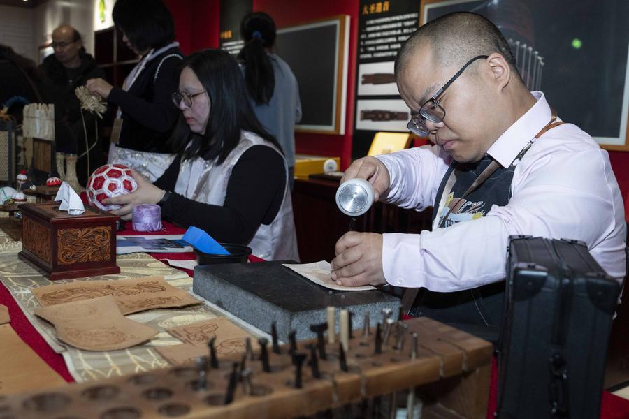 BEIJING, Nov. 21 (Xinhua) -- Featuring artworks created by disabled artists from Shanghai, an exhibition kicked off at the Sensory Experience Gallery of the Palace Museum in Beijing on Friday. Under the guidance of inheritors of intangible cultural heritages, these artists infused their love for life and reverence for culture into their works.