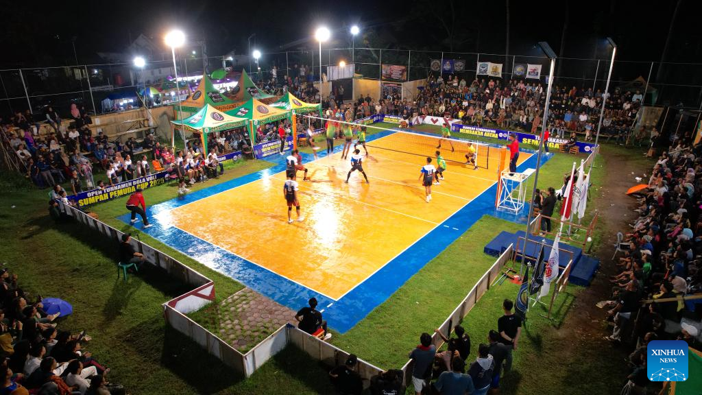 People watch a volleyball game at Purwosono Village, East Java, Indonesia, Nov. 13, 2025. (Xinhua/Cen Yunpeng)