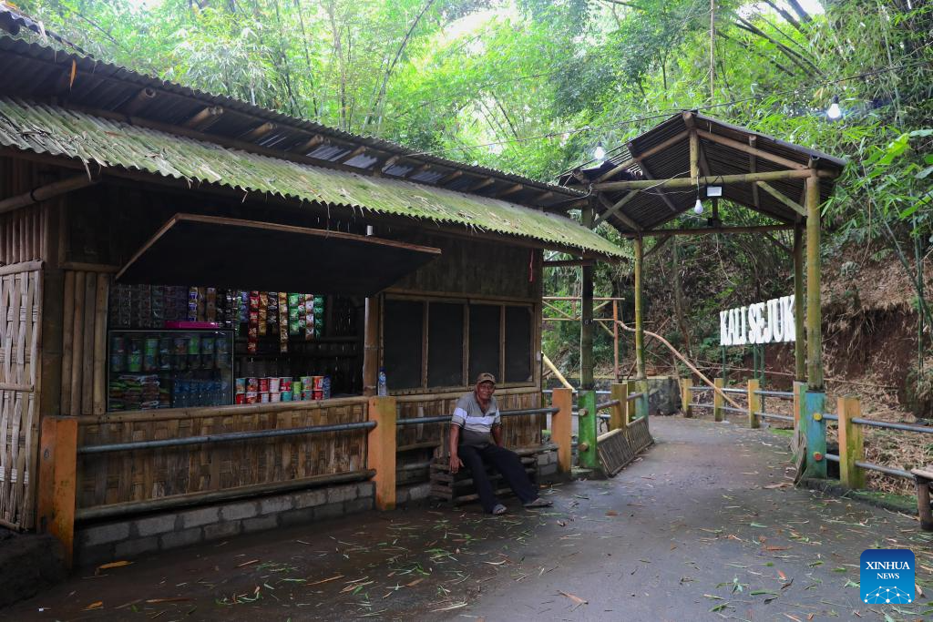 This photo taken on Nov. 13, 2025 shows a shop opened by Purwosono villagers by the "Cooling Creek" at Purwosono Village, East Java, Indonesia. (Xinhua/Cen Yunpeng)