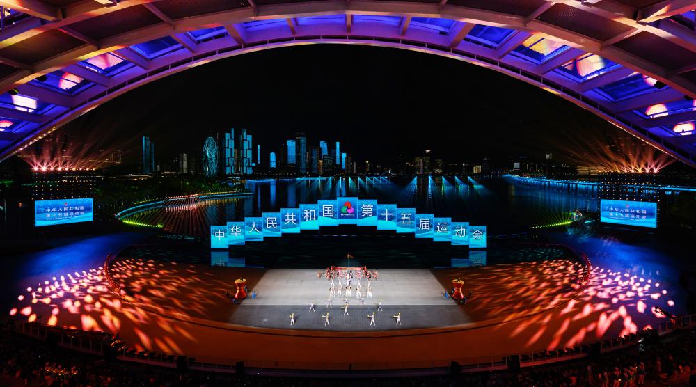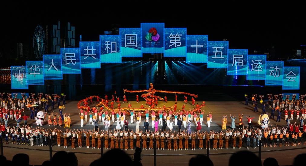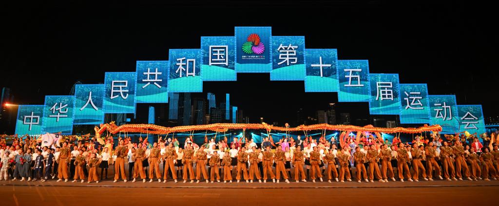 Artists perform before the closing ceremony of China's 15th National Games in Shenzhen, south China's Guangdong Province, Nov. 21, 2025. (Xinhua/Zhang Long)