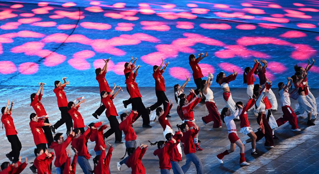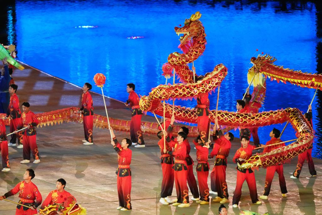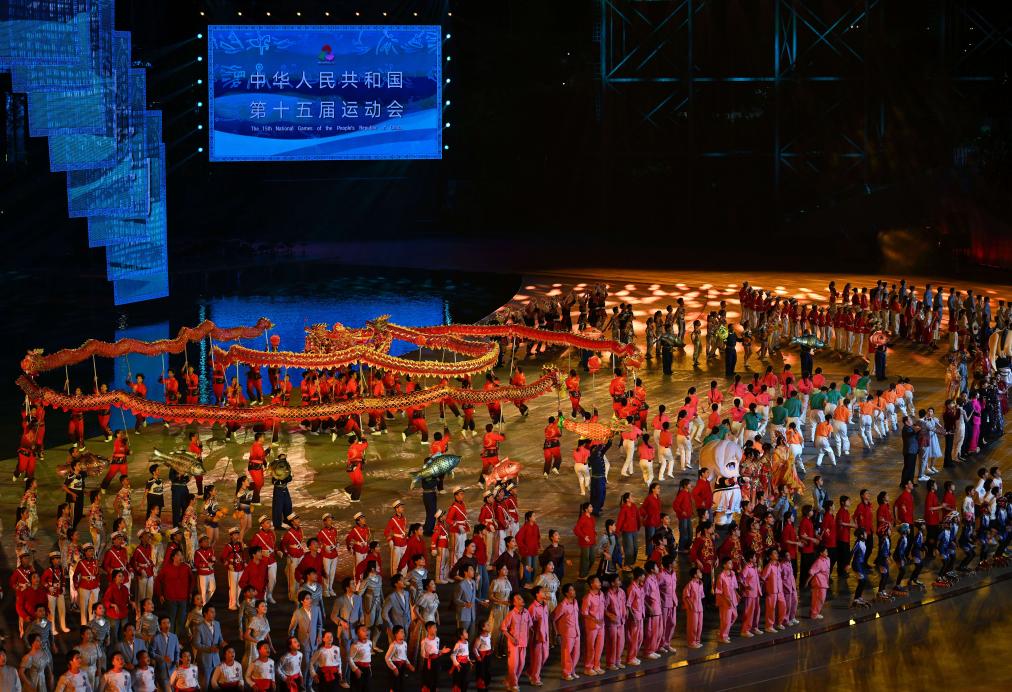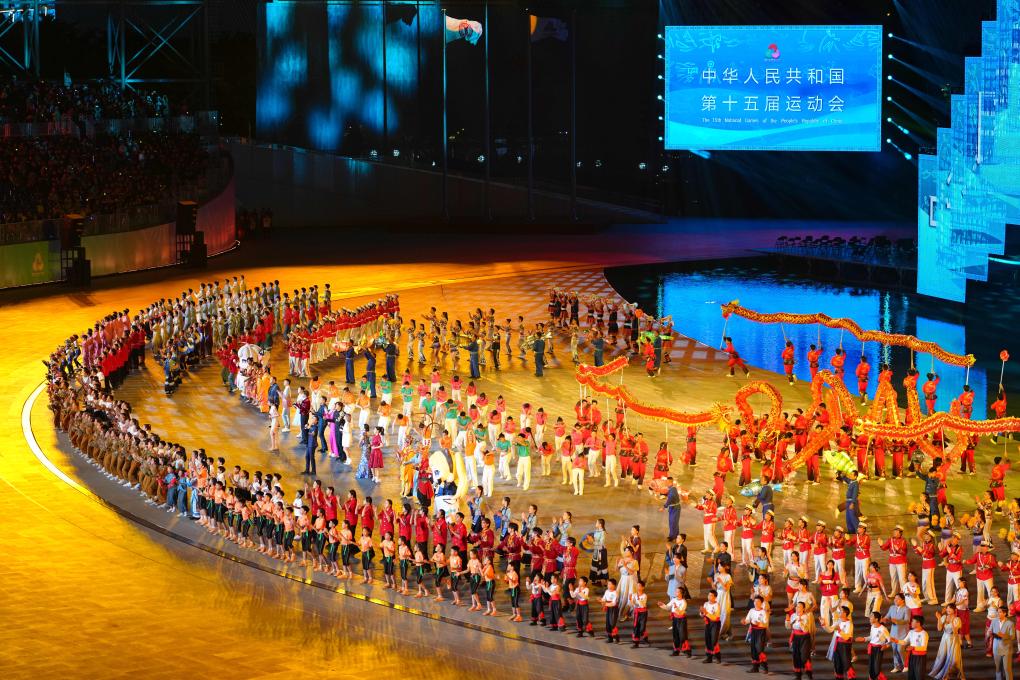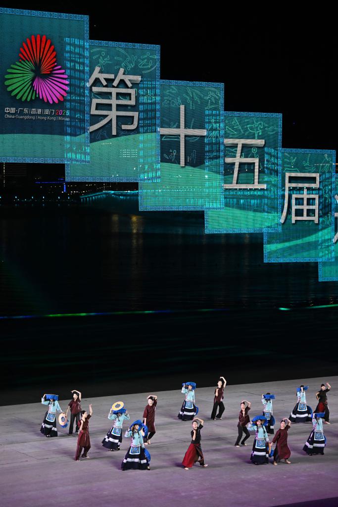 Artists perform before the closing ceremony of China's 15th National Games in Shenzhen, south China's Guangdong Province, Nov. 21, 2025. (Xinhua/Chen Sihan)
