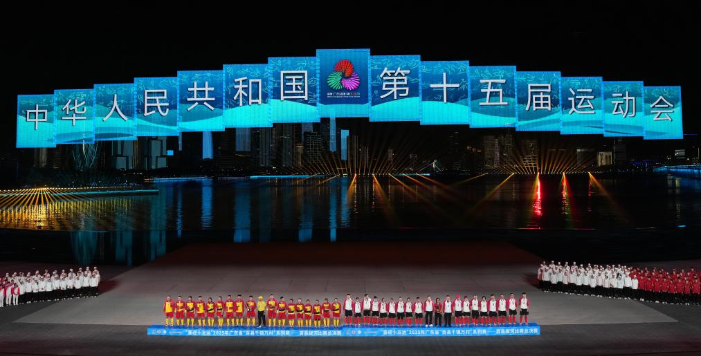 Artists perform before the closing ceremony of China's 15th National Games in Shenzhen, south China's Guangdong Province, Nov. 21, 2025. (Xinhua/Lian Zhen)
