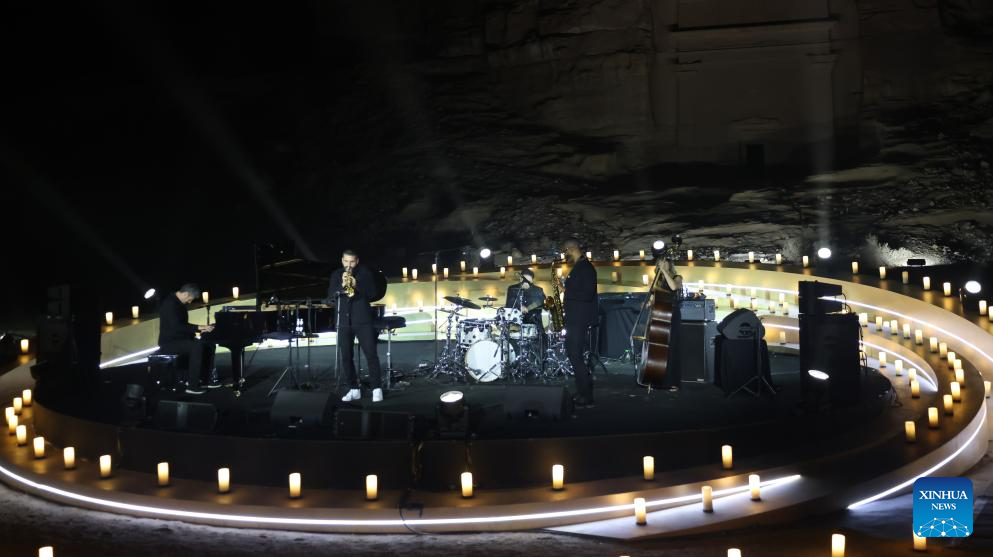 Musicians perform at the Hegra heritage site in AlUla, Saudi Arabia, Nov. 20, 2025.