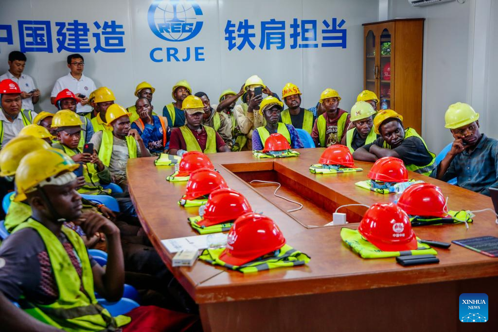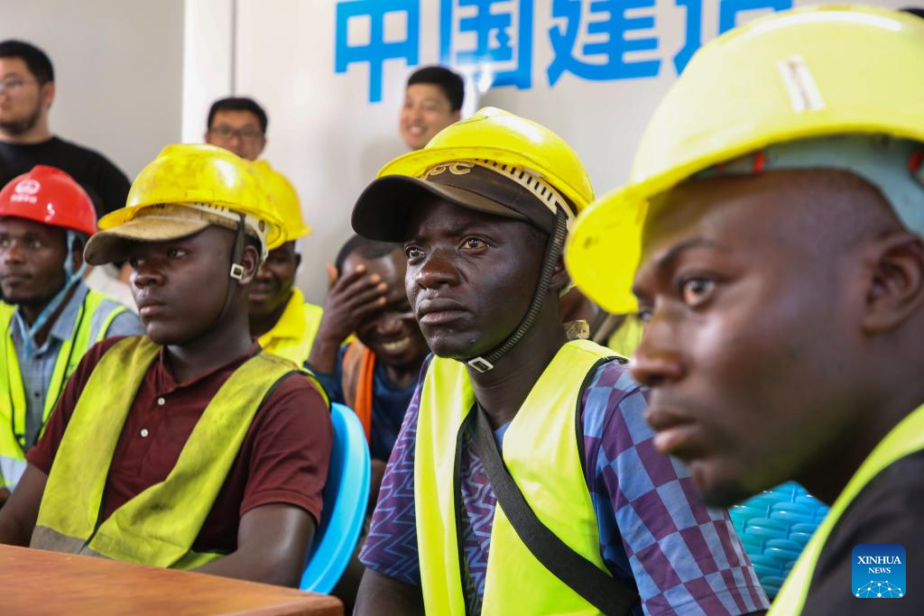 Tanzanian employees of China Railway Jianchang Engineering Company (CRJE) (East Africa) Limited attend a skills training session at a construction site in Dar es Salaam, Tanzania, on Nov. 11, 2025. (Xinhua/Emmanuel Herman)