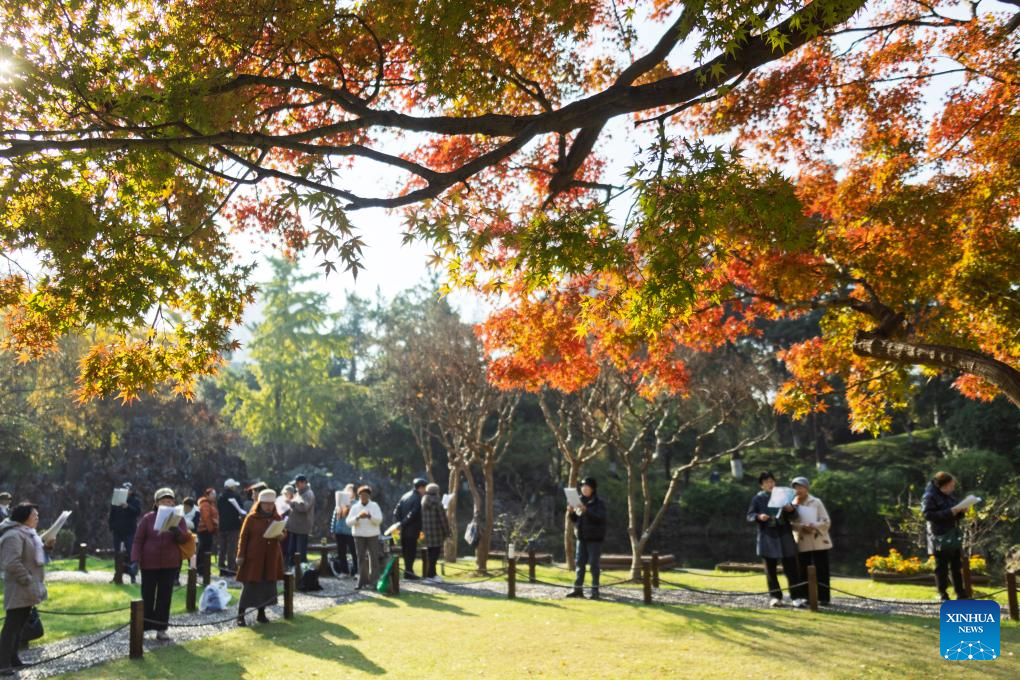 Citizens take part in a choir at the Mochou Lake Park in Nanjing, east China's Jiangsu Province, Nov. 21, 2025. (Photo by Sun Zhongnan/Xinhua)