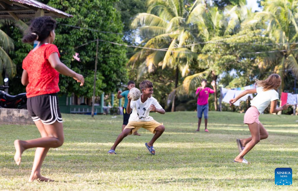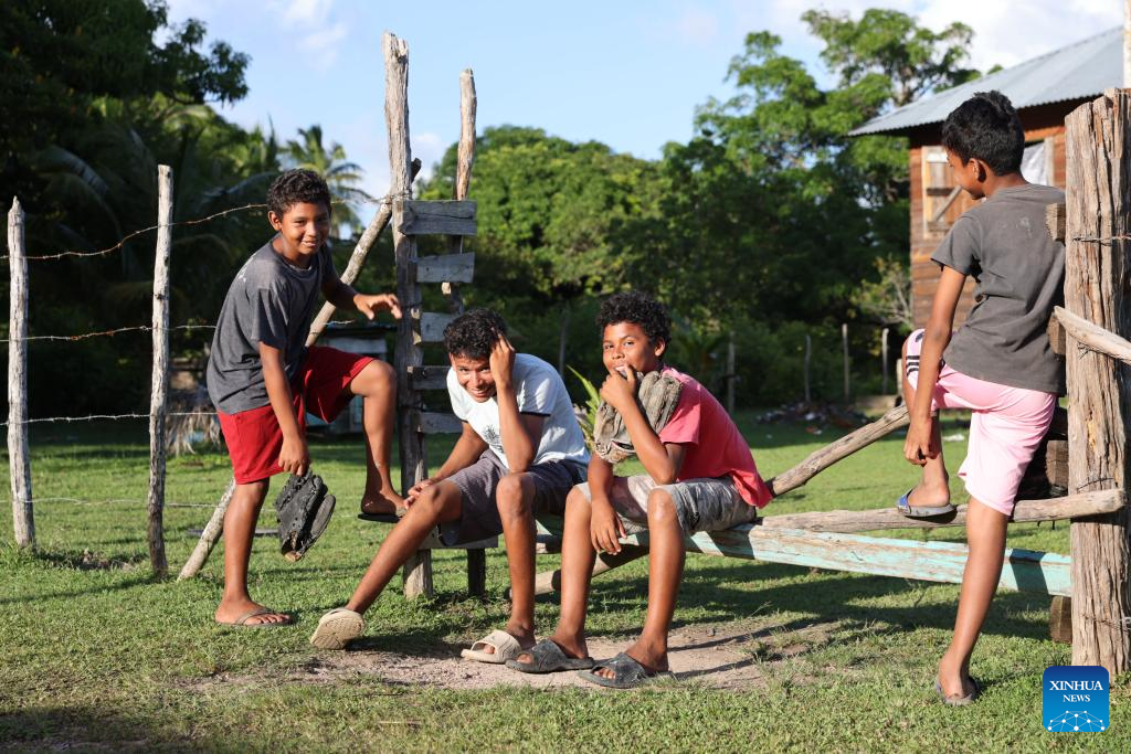 Teenagers play in Tuapi, North Caribbean Coast Autonomous Region, Nicaragua, on Nov. 19, 2025. Tuapi, an indigenous community in the North Caribbean Coast Autonomous Region of Nicaragua, is home mainly to Miskito residents. Located near the Caribbean Sea, the community relies primarily on fishing and livestock farming. (Xinhua/Li Mengxin)