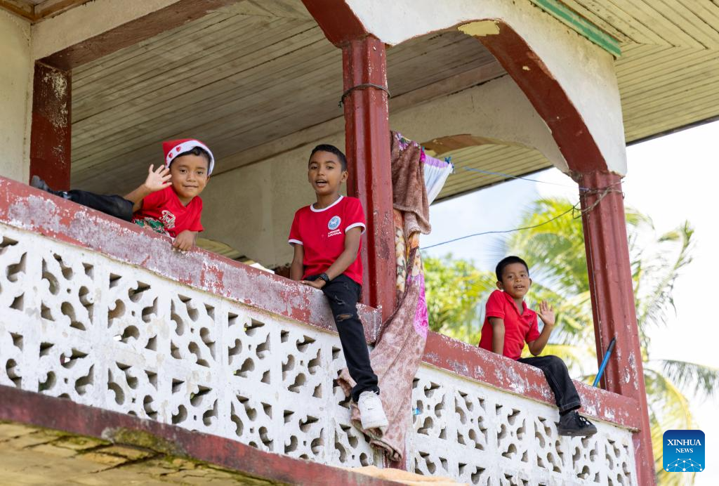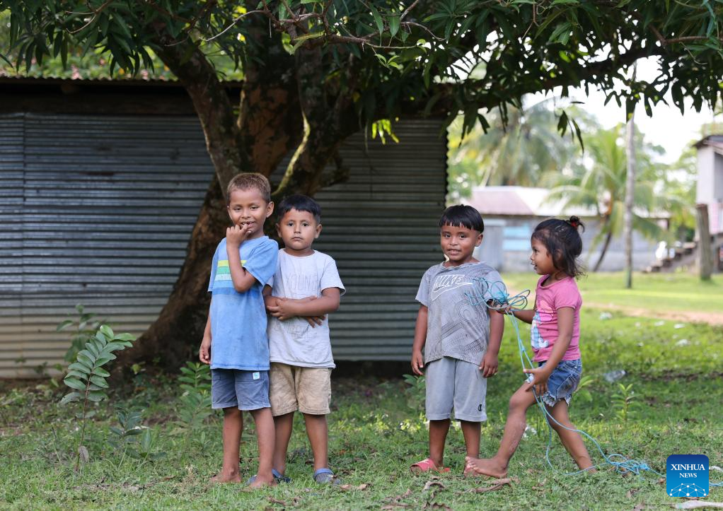 Children play in Karata, the North Caribbean Coast Autonomous Region, Nicaragua, on Nov. 19, 2025. Karata, an indigenous community in the North Caribbean Coast Autonomous Region of Nicaragua, is inhabited mainly by the Miskito people. Surrounded by the Caribbean Sea, lagoons, and mangroves, the community is accessible mainly by boat. (Xinhua/Li Mengxin)