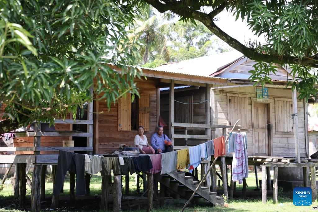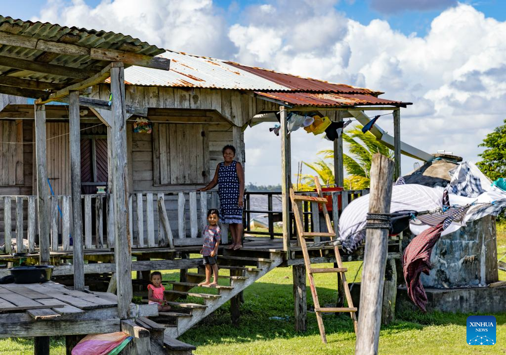 People relax at home in Karata, the North Caribbean Coast Autonomous Region, Nicaragua, on Nov. 19, 2025. Karata, an indigenous community in the North Caribbean Coast Autonomous Region of Nicaragua, is inhabited mainly by the Miskito people. Surrounded by the Caribbean Sea, lagoons, and mangroves, the community is accessible mainly by boat. (Xinhua/Li Mengxin)