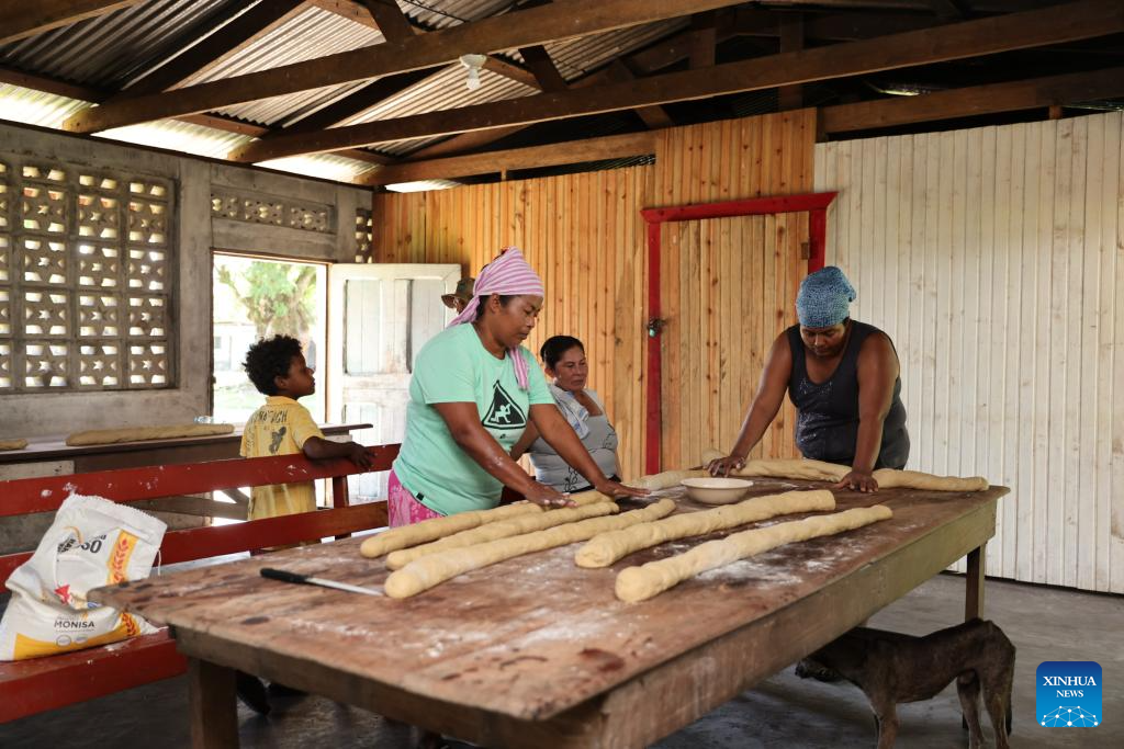 People make food in a house in Karata, the North Caribbean Coast Autonomous Region, Nicaragua, on Nov. 19, 2025. Karata, an indigenous community in the North Caribbean Coast Autonomous Region of Nicaragua, is inhabited mainly by the Miskito people. Surrounded by the Caribbean Sea, lagoons, and mangroves, the community is accessible mainly by boat. (Xinhua/Li Mengxin)