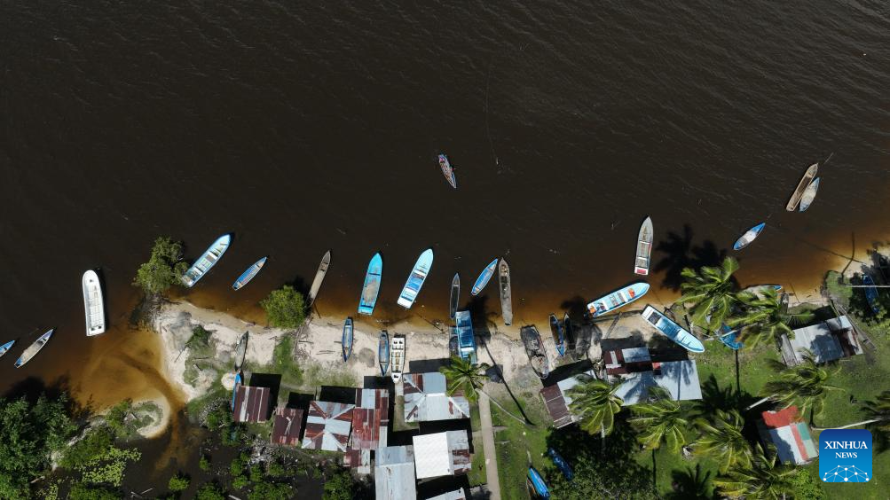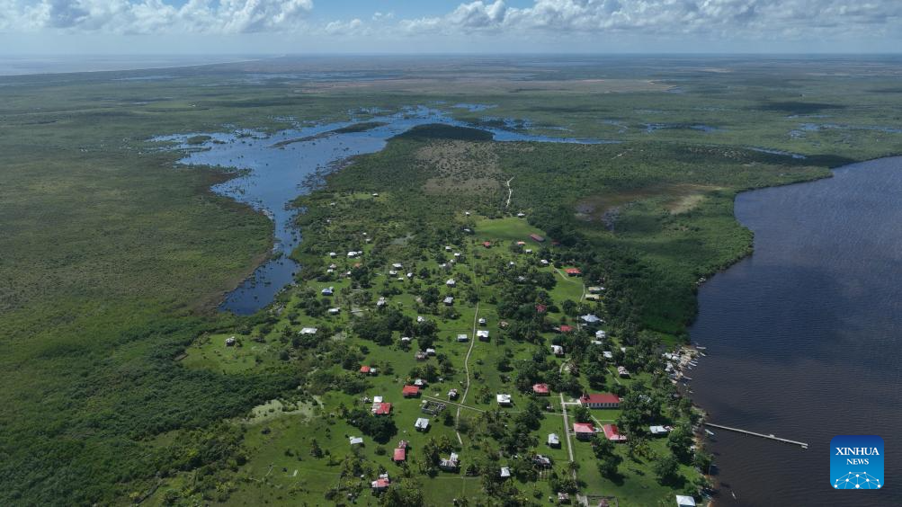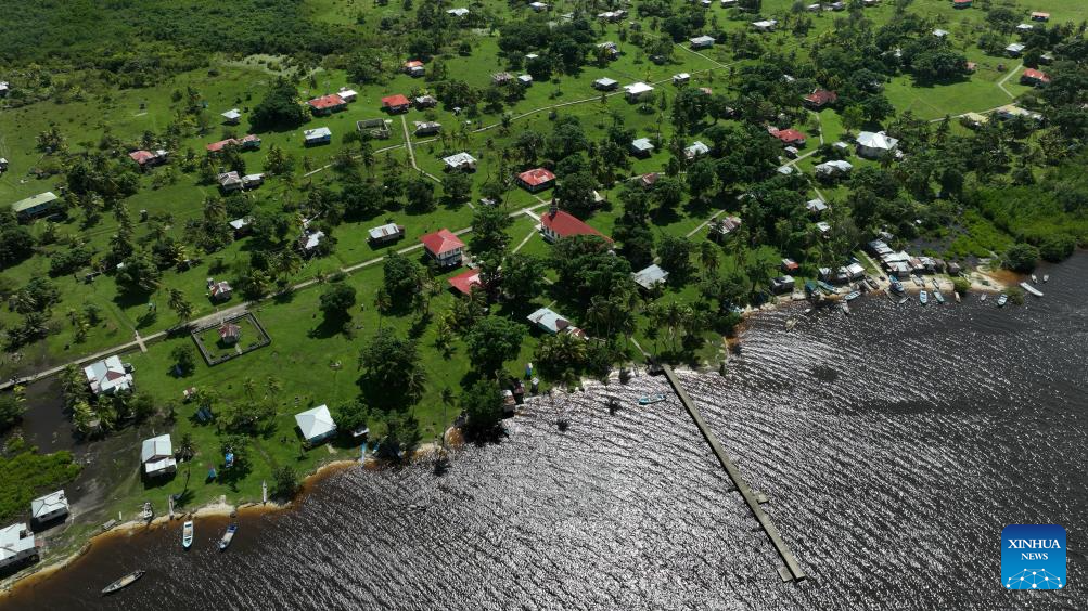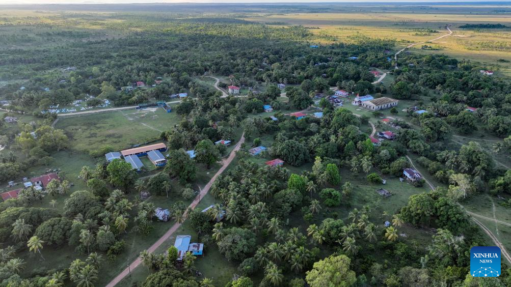 This aerial drone photo taken on Nov. 19, 2025 shows the community of Tuapi in North Caribbean Coast Autonomous Region, Nicaragua. Tuapi, an indigenous community in the North Caribbean Coast Autonomous Region of Nicaragua, is home mainly to Miskito residents. Located near the Caribbean Sea, the community relies primarily on fishing and livestock farming. (Xinhua/Li Mengxin)