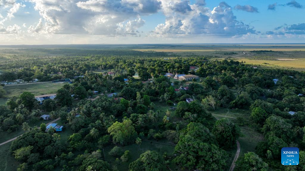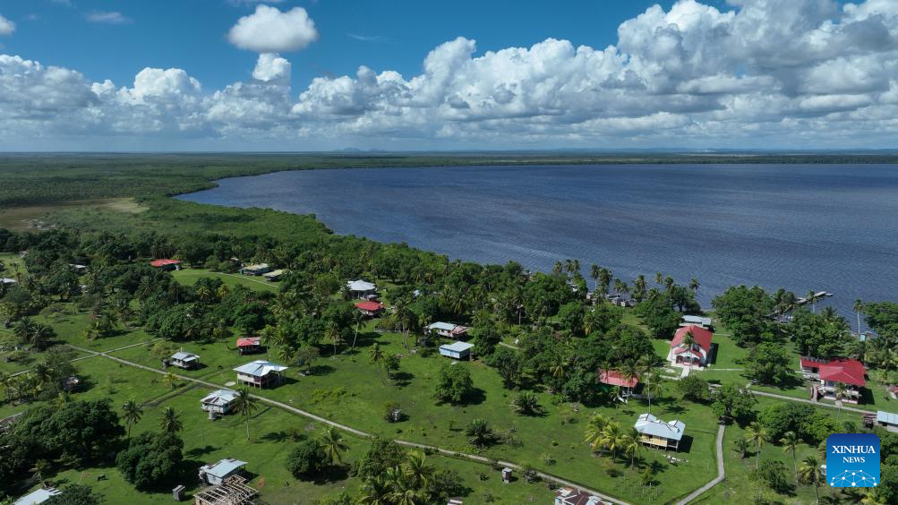This aerial drone photo taken on Nov. 19, 2025 shows the community of Tuapi in the North Caribbean Coast Autonomous Region, Nicaragua. Tuapi, an indigenous community in the North Caribbean Coast Autonomous Region of Nicaragua, is home mainly to Miskito residents. Located near the Caribbean Sea, the community relies primarily on fishing and livestock farming. (Xinhua/Li Mengxin)
