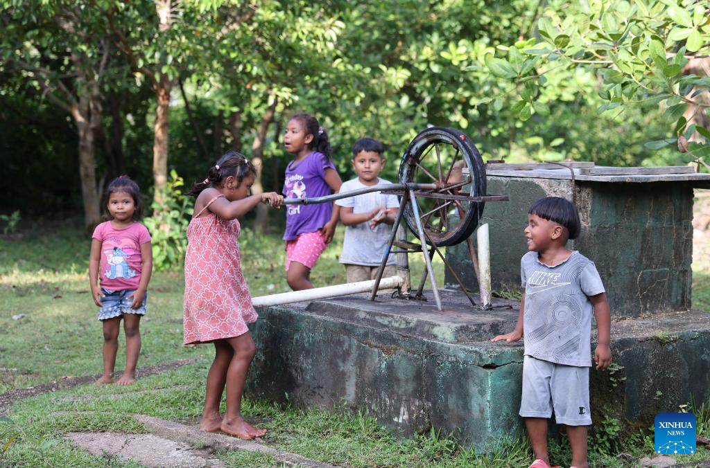 Children are pictured in Tuapi, the North Caribbean Coast Autonomous Region, Nicaragua, on Nov. 19, 2025. Tuapi, an indigenous community in the North Caribbean Coast Autonomous Region of Nicaragua, is home mainly to Miskito residents. Located near the Caribbean Sea, the community relies primarily on fishing and livestock farming. (Xinhua/Li Mengxin)