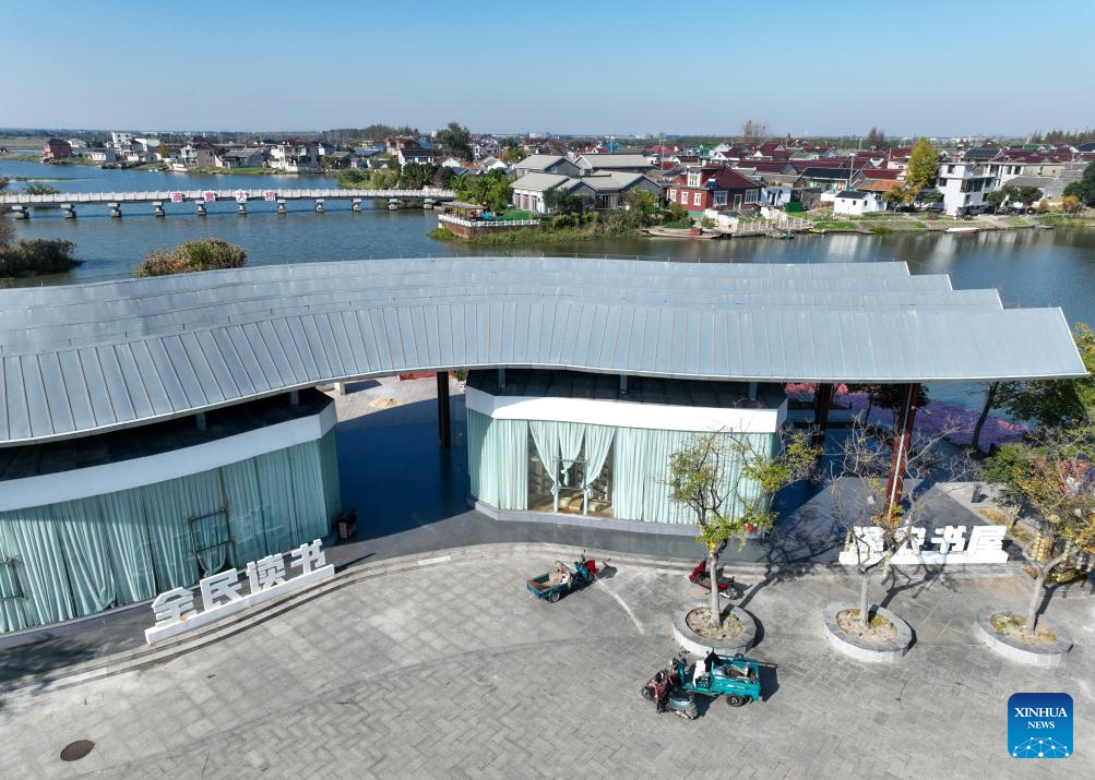 This photo taken on Nov. 21, 2025 shows a library in Liuze Village of Xinghua, east China's Jiangsu Province. Local authorities in Xinghua have sought to embed environmental construction into the rural industry landscape in recent years, helping create numerous villages that are both livable and suitable for business operations. (Photo by Shi Daozhi/Xinhua)