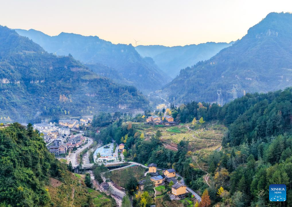 An aerial drone photo taken on Nov. 22, 2025 shows a view in Zhongyi Township, Shizhu County, southwest China's Chongqing. Located in Wuling Mountain area, Zhongyi Township in recent years has developed several characteristic industries so as to build a modern agricultural industrial system.