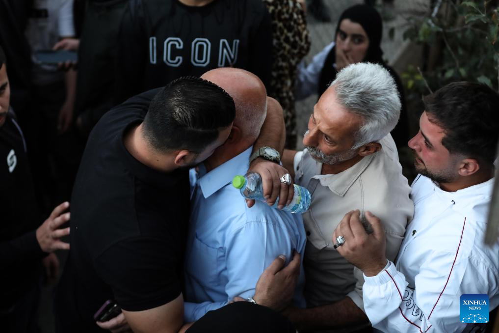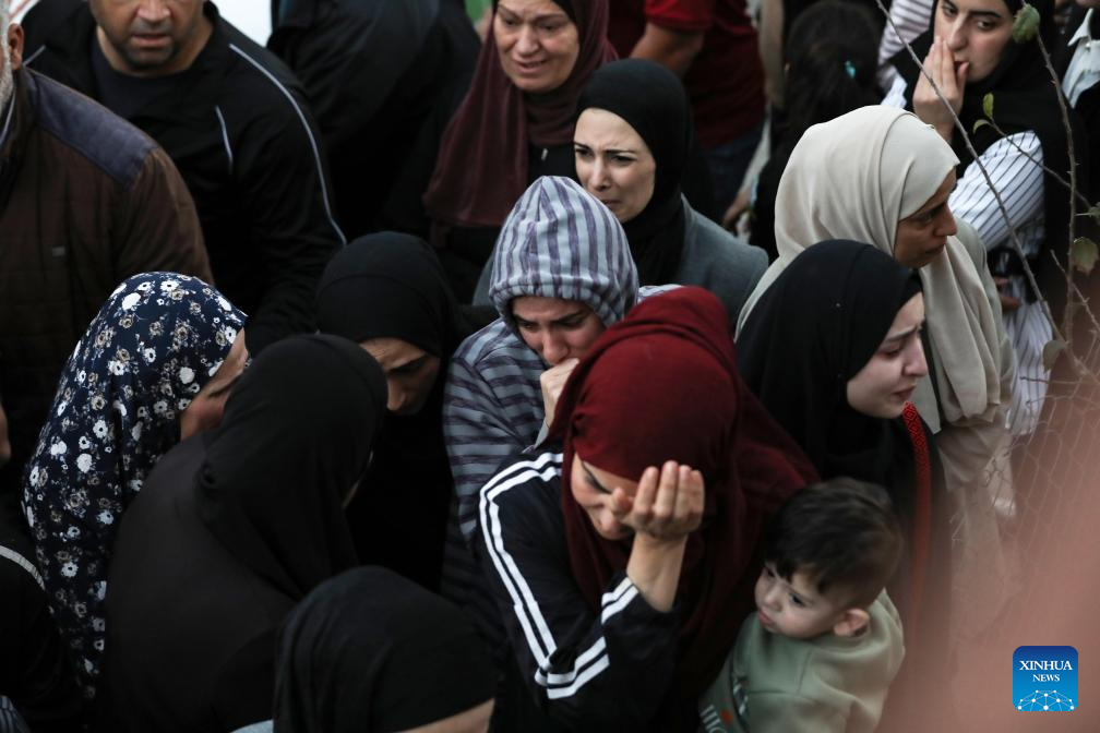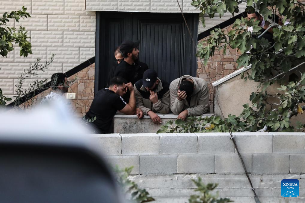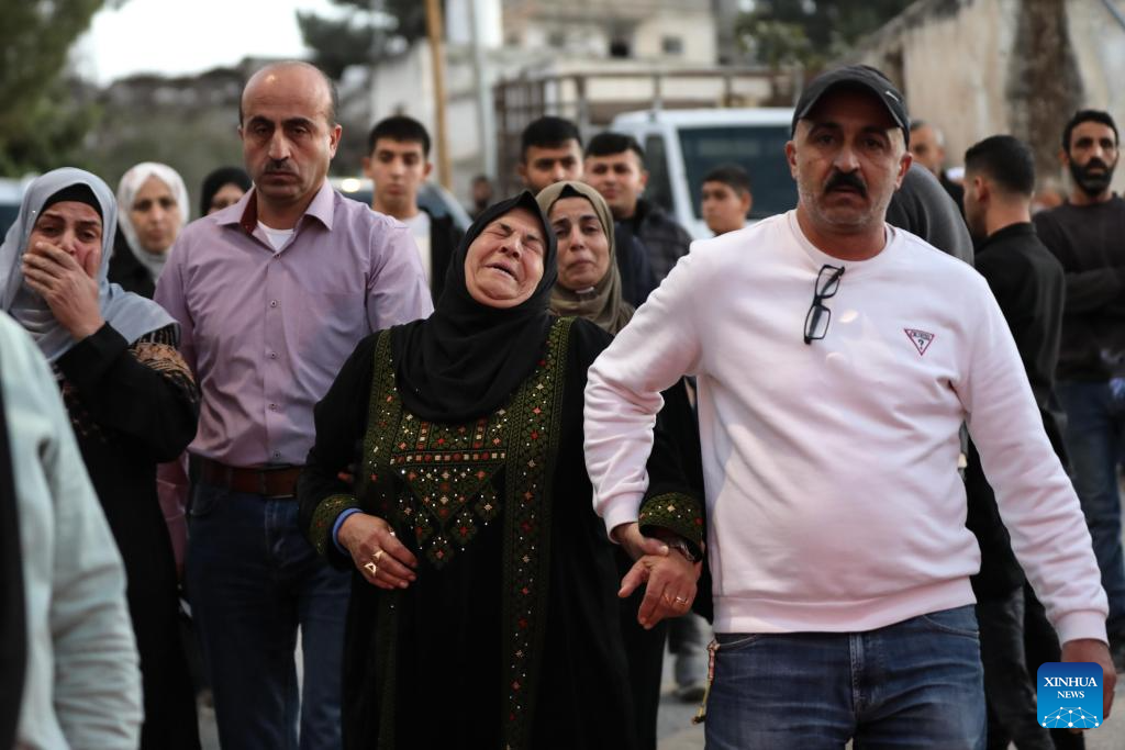 People mourn for a 24-year-old Palestinian killed by Israeli forces in the town of Tell near the West Bank city of Nablus, on Nov. 21, 2025. Israeli forces shot dead a Palestinian man in the occupied West Bank on Friday after a manhunt for a gunman accused of wounding an Israeli soldier, Israeli officials said. The Palestinian Health Ministry identified the man as Younes Waleed Mohammad Shtayyeh, 24. In a joint statement, the Israeli military, the Shin Bet security agency and the Border Police said Shtayyeh was a member of the Palestinian Authority (PA) police. The statement said troops spotted him in the town of Tell, near Nablus, holding a rifle and firing at Israeli forces, who returned fire and killed him. Israel accused him of shooting and injuring an Israeli reserve soldier during operations in the area on Thursday. (Photo by Ayman Nobani/Xinhua)