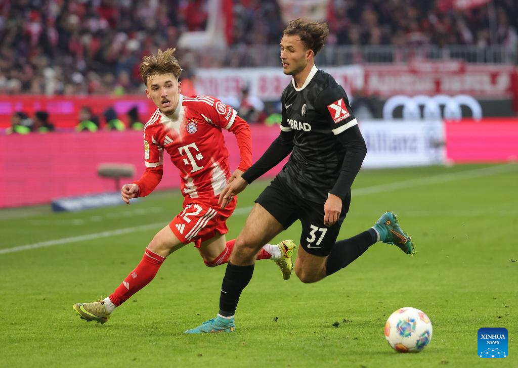 BERLIN, Nov. 22 (Xinhua) -- Bayern Munich conjured a comeback from two goals down to cruise past Freiburg 6-2 at home, with Michael Olise shining with two goals and three assists on Saturday.