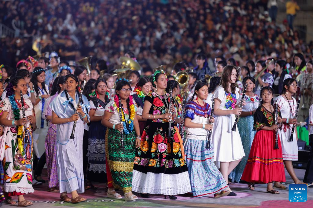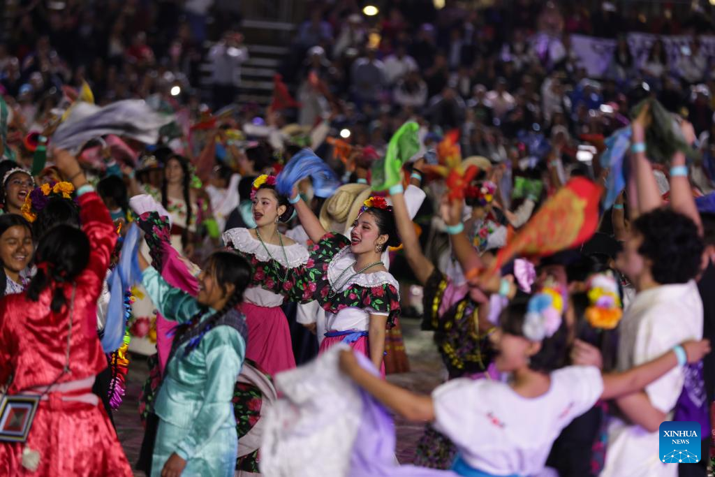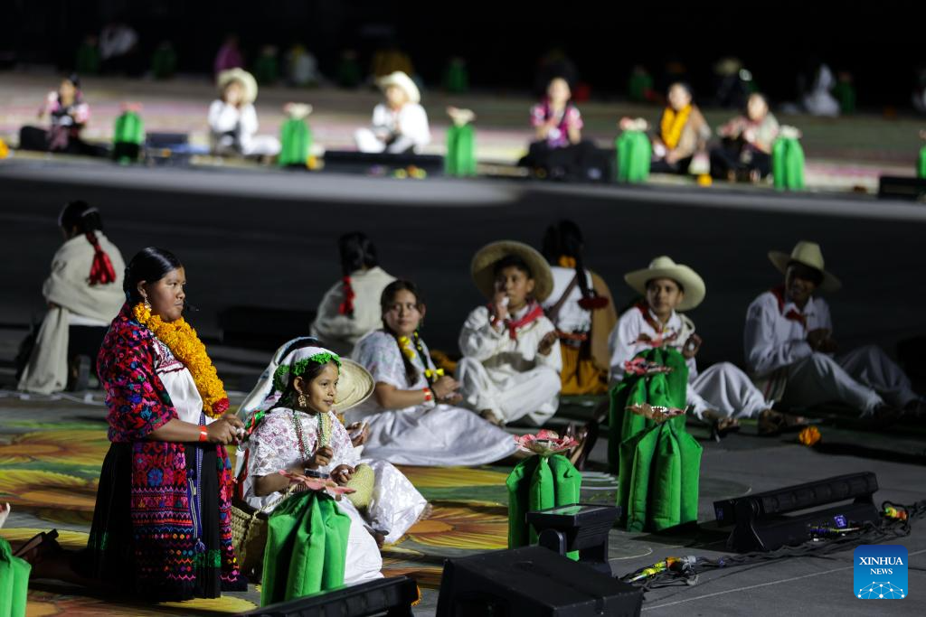Mexico held the "Yoltlajtoli: Living Voices" Indigenous Community Cultures Festival on Saturday at the Zocalo Square in its capital. Children and adolescents from Indigenous communities across the country performed in their native languages, highlighting the linguistic and cultural diversity of Mexico. (Xinhua/Francisco Canedo)