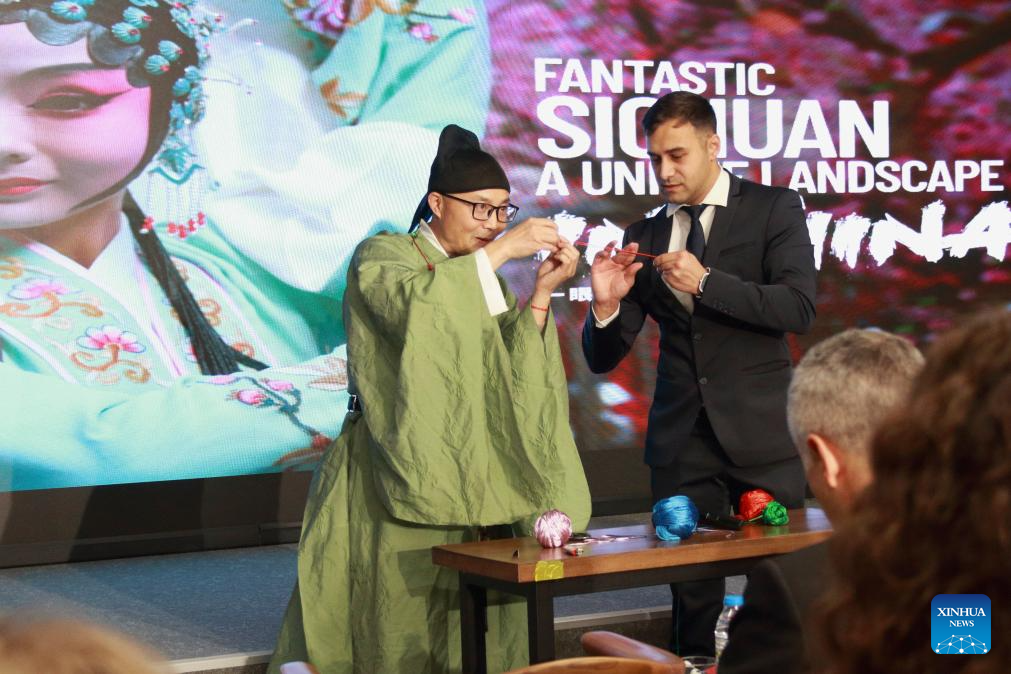 Chinese artists perform at a conference on economic, trade and cultural cooperation between China's Sichuan province and Bulgaria at the China Cultural Center in Sofia, Bulgaria, Nov. 24, 2025. The one-day event, organized by the Sichuan NGO Network for International Exchanges (SNIE), gathered Sichuan institutions and companies, and their potential Bulgarian partners. (Photo by Marian Draganov/Xinhua)