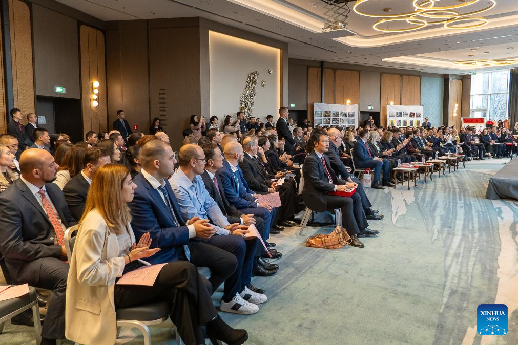 People attend an event commemorating the 10th anniversary of Bulgaria and China's cooperation under the Belt and Road Initiative in Sofia, Bulgaria, on Nov. 24, 2025. (Photo by Nemanja Cabric/Xinhua)
