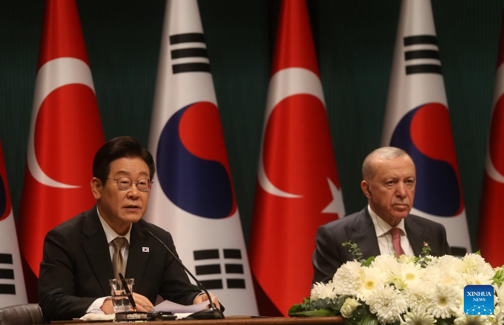 ANKARA, Nov. 24 (Xinhua) -- Türkiye and South Korea signed a memorandum of understanding (MOU) on Monday during South Korean President Lee Jae Myung's visit to Ankara, aiming to strengthen cooperation in the nuclear energy sector.