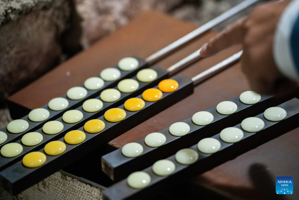 This photo taken on Nov. 19, 2025 shows Yongzi (go pieces) being cooled off at a workshop in a Yongzi cultural park in Baoshan City, southwest China's Yunnan Province. (Xinhua/Gao Yongwei)