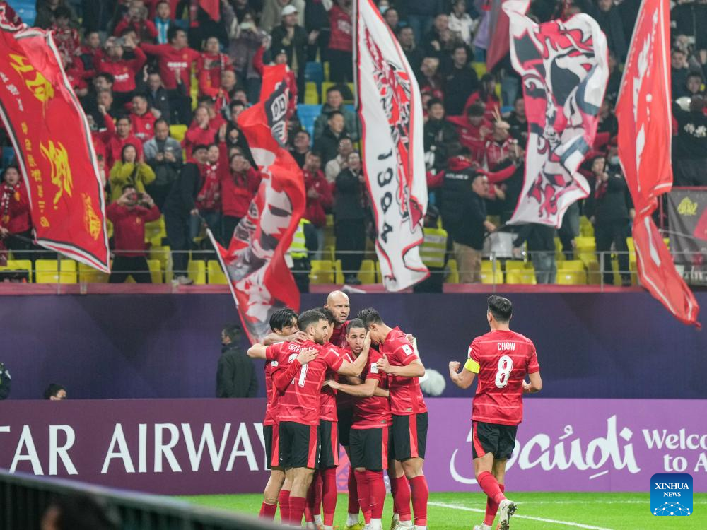 Players of Chengdu Rongcheng celebrate during the round 5 match between Chengdu Rongcheng of China and Sanfrecce Hiroshima of Japan at AFC Champions League Elite in Chengdu, southwest China's Sichuan Province, Nov. 25, 2025. (Xinhua/Wang Xi)