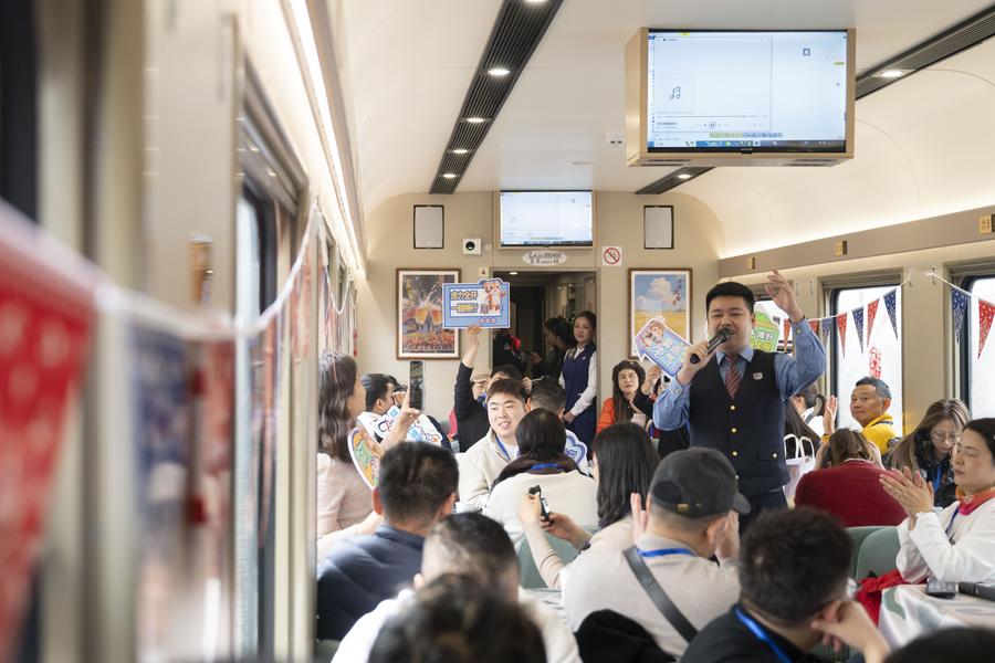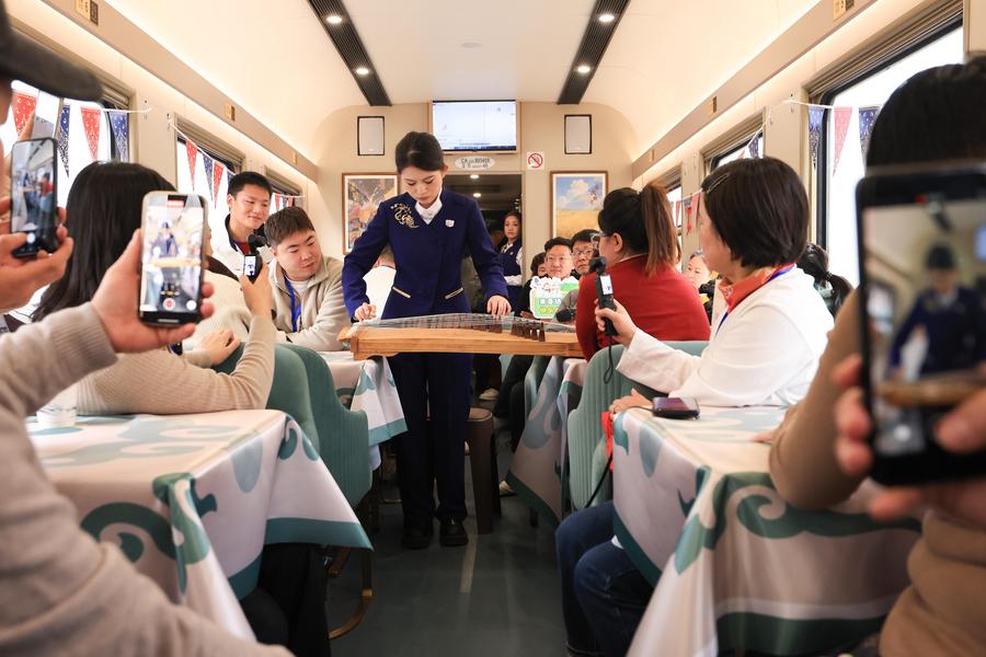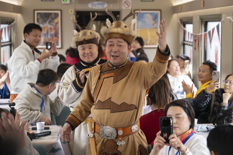 Passengers take photos onboard the Train Y783 on Nov. 26, 2025. (Xinhua/Zhang Tao)A passenger poses for photos with the Train Y783 on Nov. 26, 2025. (Xinhua/Zhang Tao)A staff member plays Guzheng, a traditional Chinese musical instrument, for passengers onboard the Train Y783 on Nov. 26, 2025. (Photo by Xu Shuai/Xinhua)Staff members perform for passengers onboard the Train Y783 on Nov. 26, 2025. (Photo by Xu Shuai/Xinhua)A staff member serves food for passengers onboard the Train Y783 on Nov. 26, 2025. (Photo by Xu Shuai/Xinhua)A staff member performs for passengers onboard the Train Y783 on Nov. 26, 2025. (Xinhua/Zhang Tao)Artists of the Oroqen ethnic group perform for passengers onboard the Train Y783 on Nov. 26, 2025. (Xinhua/Zhang Tao)A passenger tries paper-cutting onboard the Train Y783 on Nov. 26, 2025. (Xinhua/Zhang Tao)Passengers pose for photos with the Train Y783 on Nov. 26, 2025. (Xinhua/Zhang Tao)■
