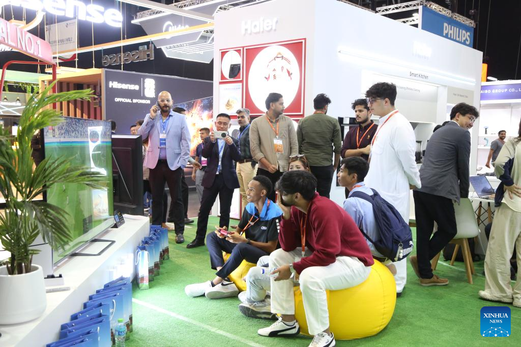 This photo taken on Nov. 26, 2025 shows people visiting the Middle East Consumer Electronics Show (MECES 2025) in Dubai, the United Arab Emirates (UAE). Co-organized by the China Chamber of Commerce for Import and Export of Machinery and Electronic Products and China Council for the Promotion of International Trade Commercial Sub-Council, the exhibition draws industry professionals and buyers from the UAE and other markets across the region. (Xinhua/Wen Xinnian)