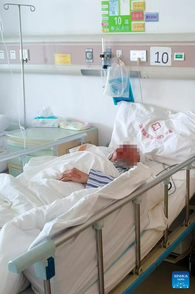 This photo taken with a mobile phone shows an injured man receiving medical treatment at Chenggong compound of the First Affiliated Hospital of Kunming Medical University, in Kunming, southwest China's Yunnan Province, Nov. 27, 2025. Eleven people were killed and two others injured in the early hours of Thursday, after a test train collided with maintenance workers on the track in Kunming, capital of southwest China's Yunnan Province, local railway authorities said.