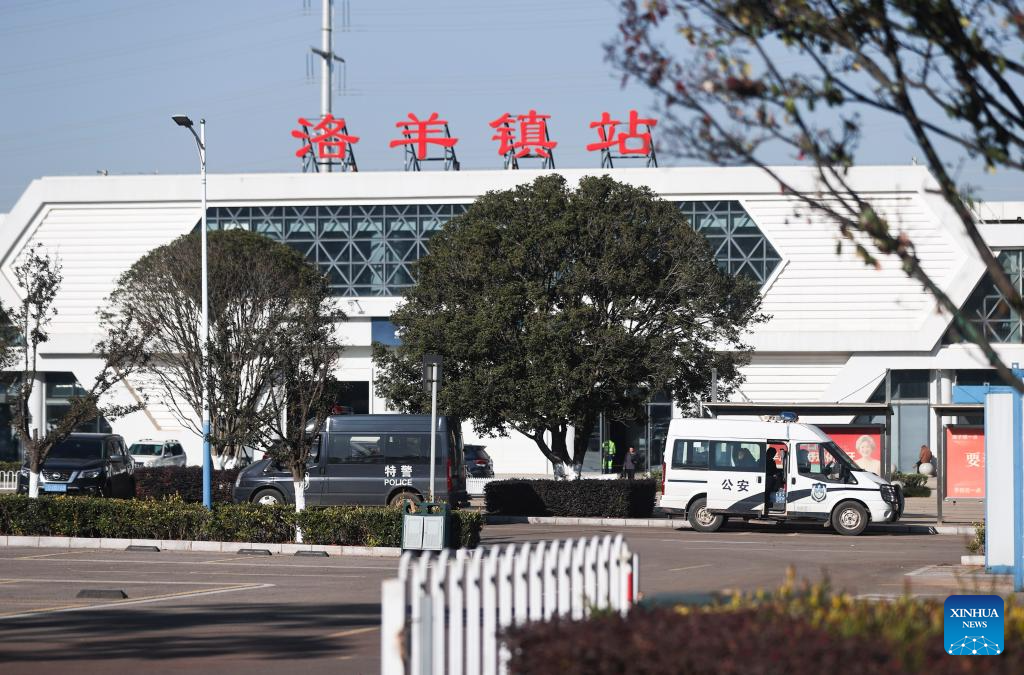 This photo taken on Nov. 27, 2025 shows an exterior view of the Luoyangzhen station, where a fatal track accident took place, in Kunming, southwest China's Yunnan Province. Eleven people were killed and two others injured in the early hours of Thursday, after a test train collided with maintenance workers on the track in Kunming, capital of southwest China's Yunnan Province, local railway authorities said. The accident happened at the Luoyangzhen station in Kunming, according to the China Railway Kunming Group Co., Ltd. The cause of the accident is under investigation, and the railway station has so far resumed operations. (Xinhua/Chen Xinbo)