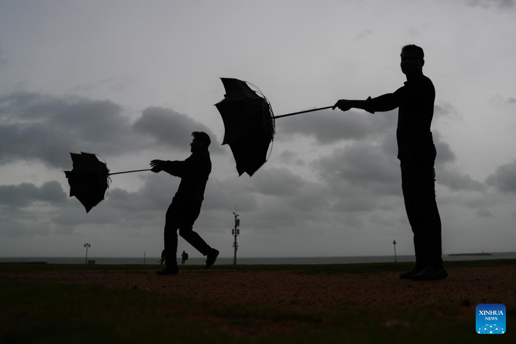 Officials warned that heavy rains, strong winds, and hazardous sea conditions are expected to persist across the island over the coming days as the system advances. (Photo by Thilina Kaluthotage/Xinhua)