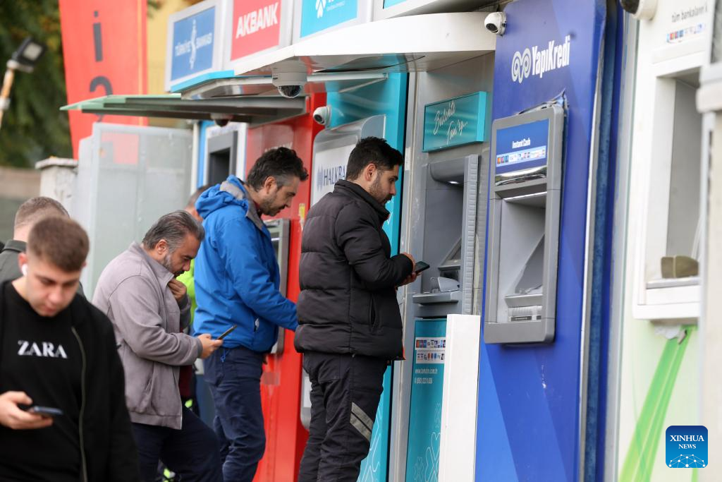 People withdraw money from ATMs in Ankara, Türkiye, Nov. 27, 2025. (Mustafa Kaya/Handout via Xinhua)