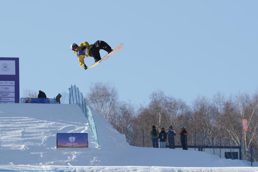 CHONGLI, China, Nov. 27 (Xinhua) -- Canada's 17-year-old Eli Bouchard and China's Beijing 2022 Winter Olympic champion Su Yiming led the men's qualifiers of the opener of the 2025-26 International Ski Federation (FIS) Snowboard Big Air World Cup season here on Thursday with shocking tricks.