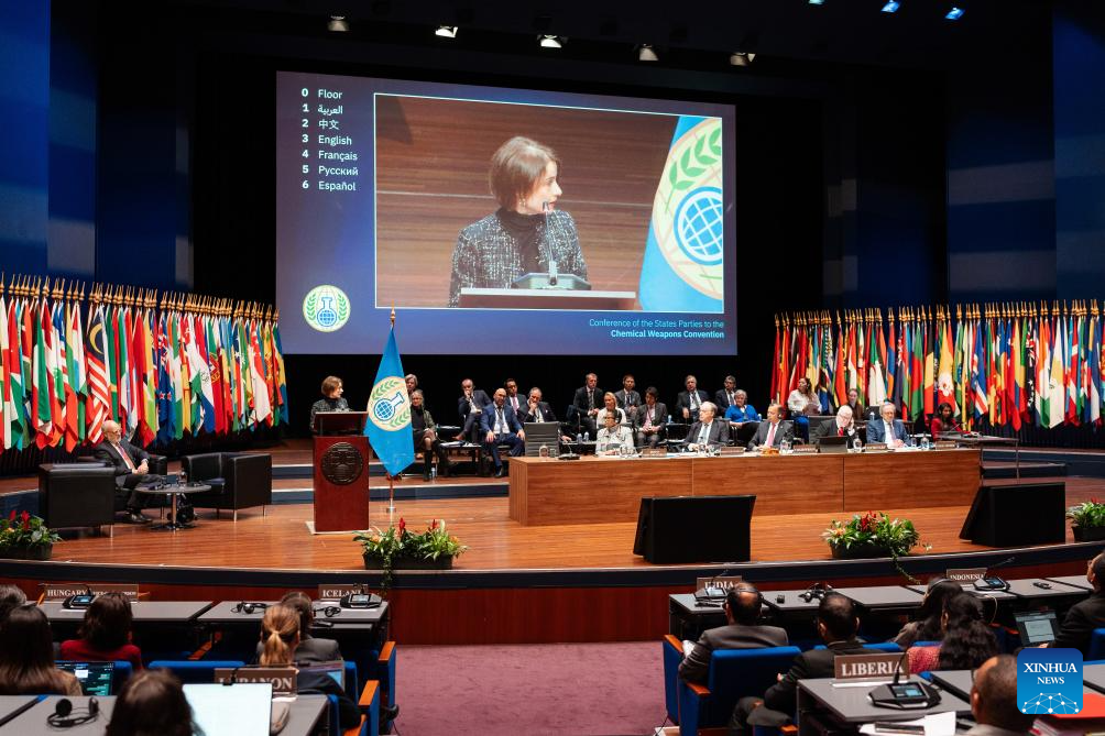 Sabrina Dallafior addresses the 30th Conference of the States Parties after being appointed as the next Director-General of the Organization for the Prohibition of Chemical Weapons (OPCW) by the Conference in The Hague, the Netherlands, Nov. 27, 2025. Swiss diplomat Sabrina Dallafior was appointed the next Director-General of the Organization for the Prohibition of Chemical Weapons (OPCW) by the Conference of the State Parties on Thursday, for a term of four years. (Xinhua/OPCW)