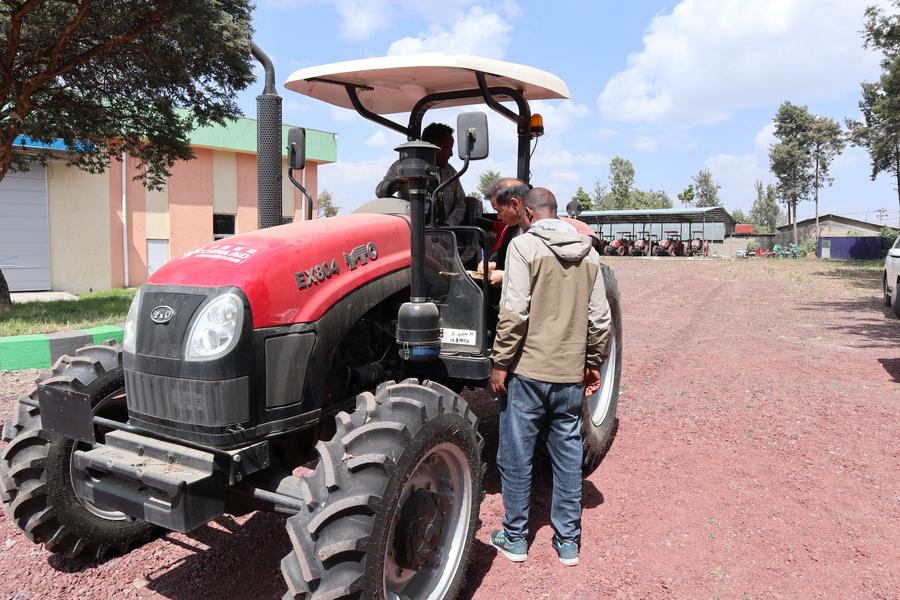 Donated by the fourth batch of Chinese agricultural experts in Ethiopia, the over 70 pieces of agricultural equipment include sowing and soil-tilling machines, a tractor, corn and wheat threshers, seed drillers, crop planting machines, milkers, water pumps, chick incubators, artificial insemination machines, and solar-powered insecticidal lamps.