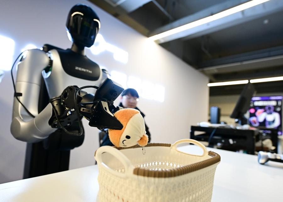 An engineer observes a humanoid robot grabbing a component at a laboratory of Leju Robotics in Hefei, east China's Anhui Province, Oct. 24, 2025. (Xinhua/Zhou Mu)An engineer adjusts a humanoid robot at a laboratory of Leju Robotics in Hefei, east China's Anhui Province, Oct. 24, 2025. (Xinhua/Zhou Mu)A staff member trains a humanoid robot to play Chinese diabolo (kongzhu) for data collection purpose at Zerith, a robotics company, in Hefei, east China's Anhui Province, Nov. 25, 2025. (Xinhua/Zhou Mu)An engineer installs battery for a humanoid robot at Leju Robotics in Hefei, east China's Anhui Province, Oct. 24, 2025. (Xinhua/Zhou Mu)A staff member trains a humanoid robot to fetch objects for data collection purpose at Zerith, a robotics company, in Hefei, east China's Anhui Province, Nov. 25, 2025. (Xinhua/Zhou Mu)A staff member trains a humanoid robot to fetch objects for data collection purpose at Zerith, a robotics company, in Hefei, east China's Anhui Province, Nov. 25, 2025. (Xinhua/Zhou Mu)An engineer runs a simulation program at Leju Robotics in Hefei, east China's Anhui Province, Oct. 24, 2025. (Xinhua/Zhou Mu)
