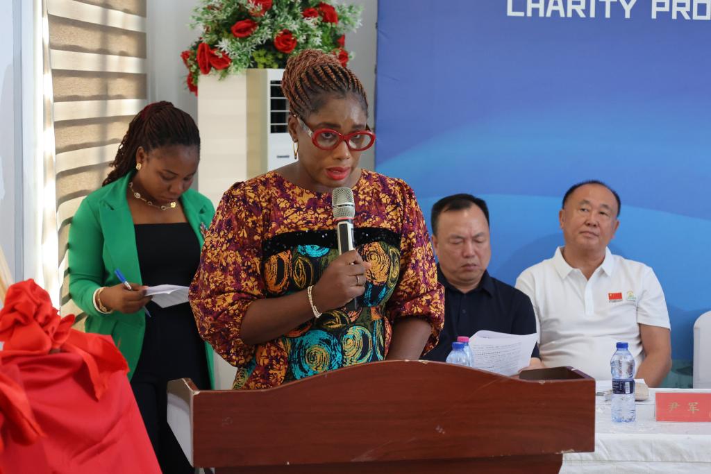 Clinical Director at Lekma Hospital Folasade Ojo-Benys speaks at the renewal ceremony for a charity project between the Chinese medical team to Ghana and Lekma Hospital in Accra, Ghana, Nov. 27, 2025. The Chinese medical team to Ghana, with the support of some Chinese enterprises and charity organizations, on Thursday renewed its charity project to provide free surgical treatment at Lekma Hospital in Accra, the national capital.(Photo by Seth/Xinhua)