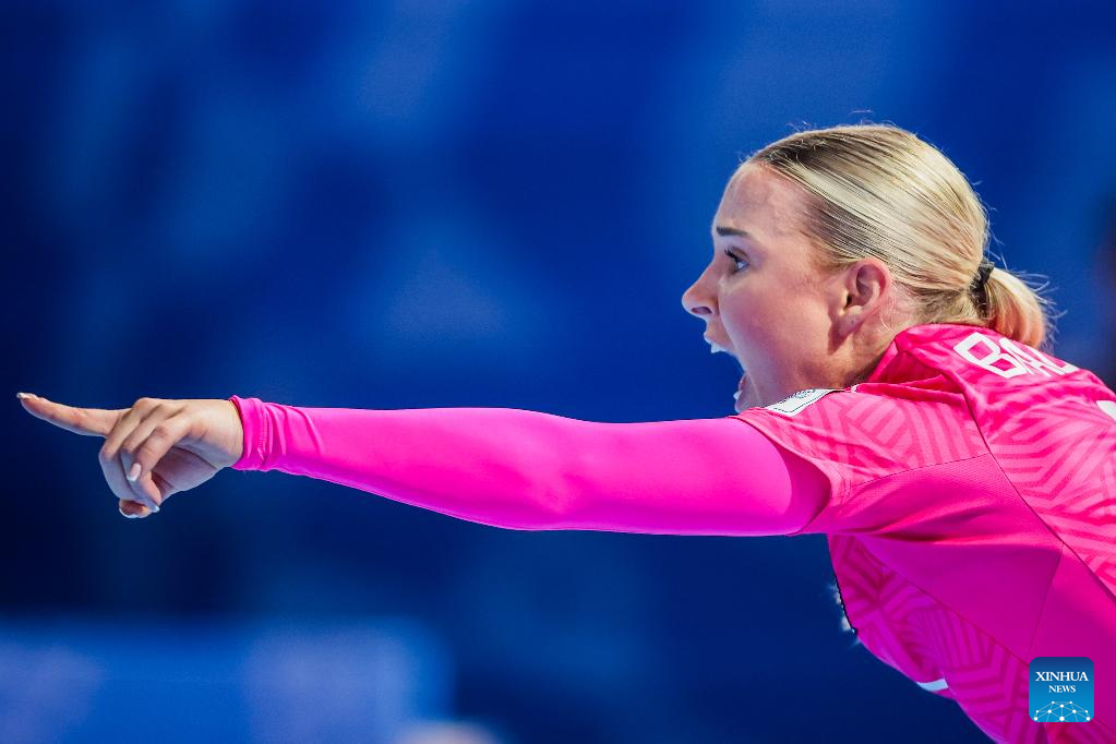 Goalkeeper Danielle Bradley of New Zealand gestures during the group C match between Portugal and New Zealand at the FIFA Futsal Women's World Cup 2025 in Pasig City, the Philippines on Nov. 29, 2025. (Xinhua/Rouelle Umali)
