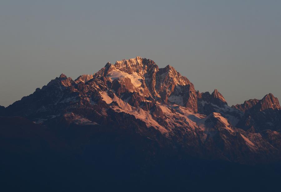LIJIANG, Nov. 29 (Xinhua) -- The snow-capped Yulong Snow Mountain is located in the northwest of the city of Lijiang with the main peak elevation being 5,590.2 meters. Take a look at the majestic scenery here.