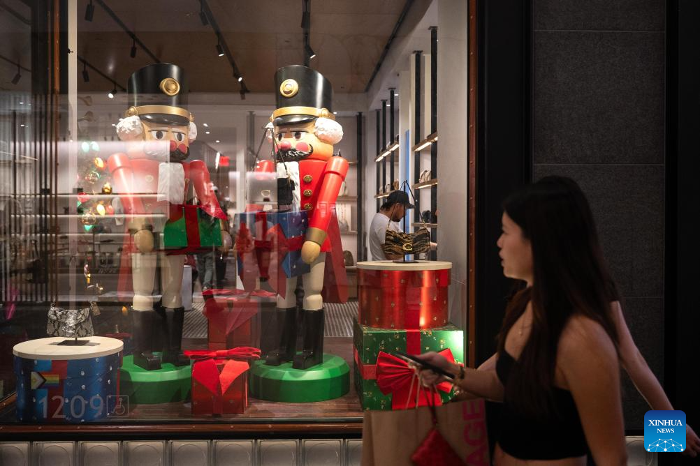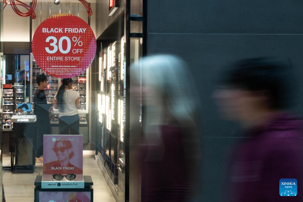 People walk past a store during the Black Friday sales event in San Jose, California, the United States, Nov. 28, 2025. (Photo by Ziyu Julian Zhu/Xinhua)